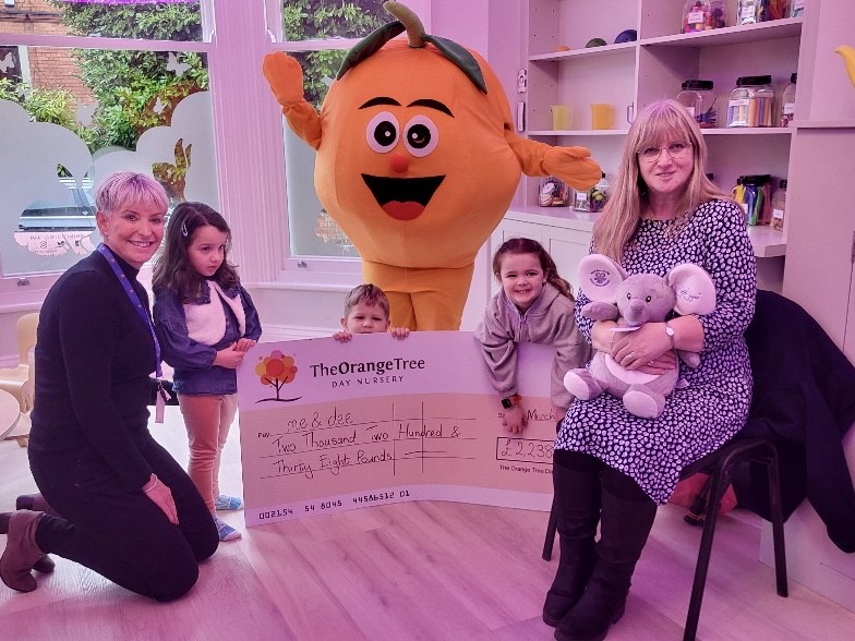 On Friday 1 March The Orange Tree Day Nurseries were delighted to welcome Maria Hanson (MBE) to receive a fundraising cheque of £2,238 for Derby based me & dee charity, dedicated to supporting families facing life-limiting, life-shortening, or terminal health conditions.