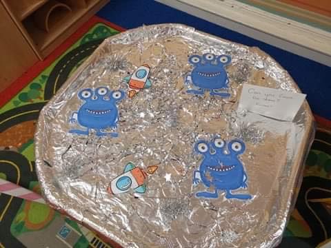 They enjoyed playing in the green custard and finding aliens and rockets!