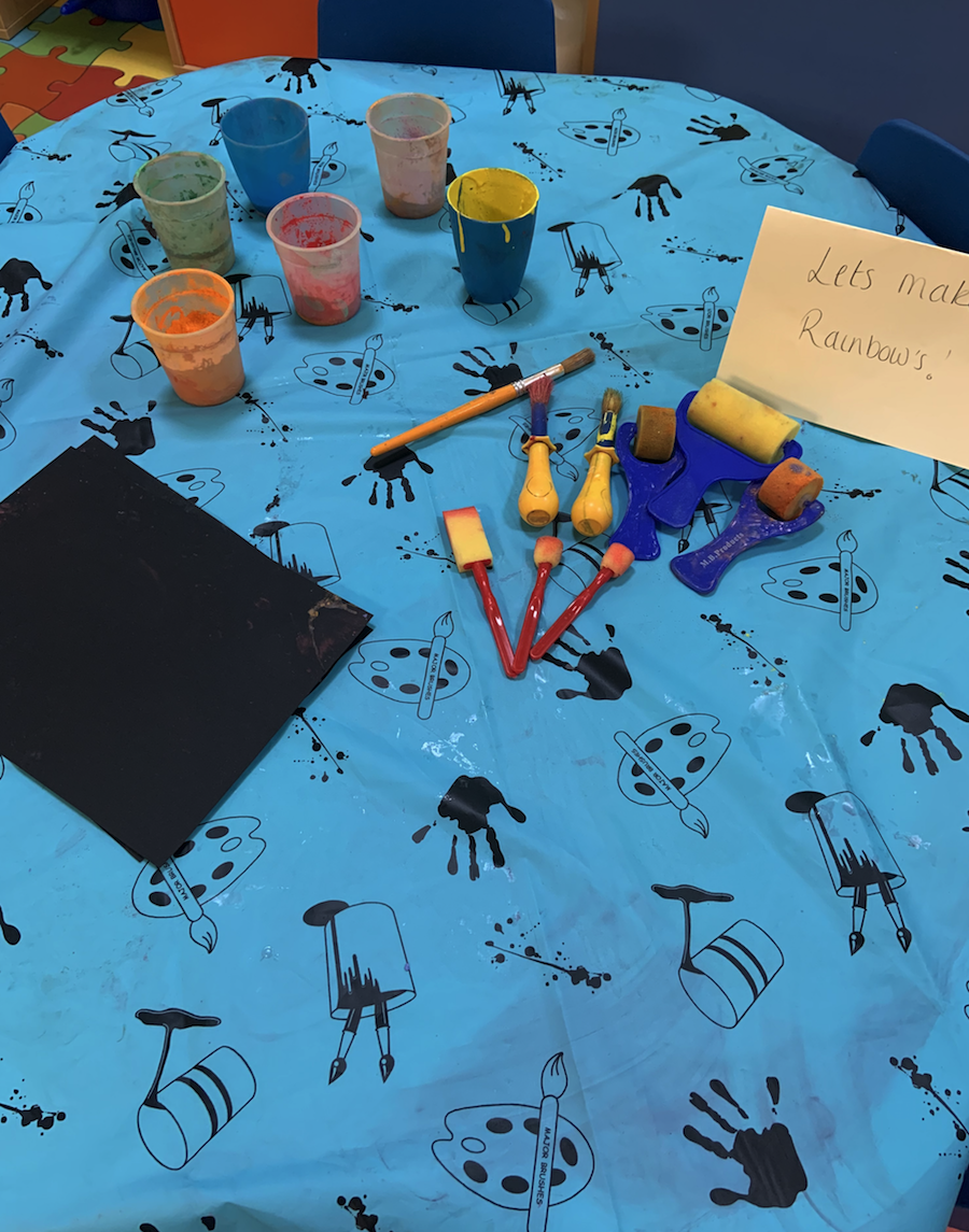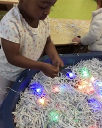Our tuff spot has been full of colourful lights and shredded paper to allow the children to explore textures and identify colours.