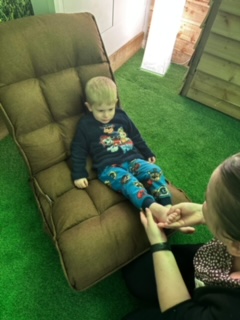 We came to nursery in our pyjamas to help us relax and enjoyed spending time in our new 'Zen Den' where we listened to tranquil music whilst enjoying a foot massage and practicing breathing techniques.